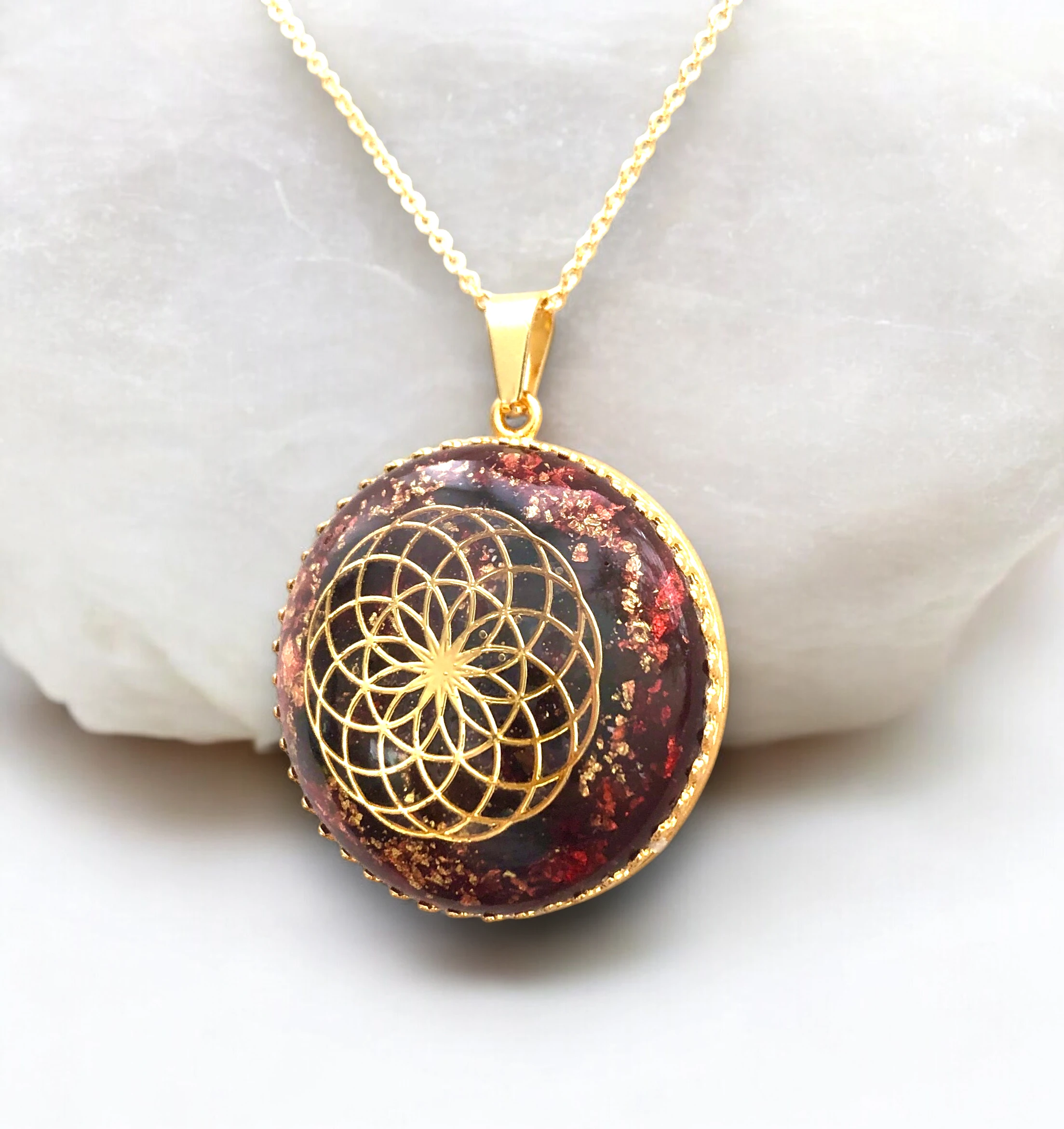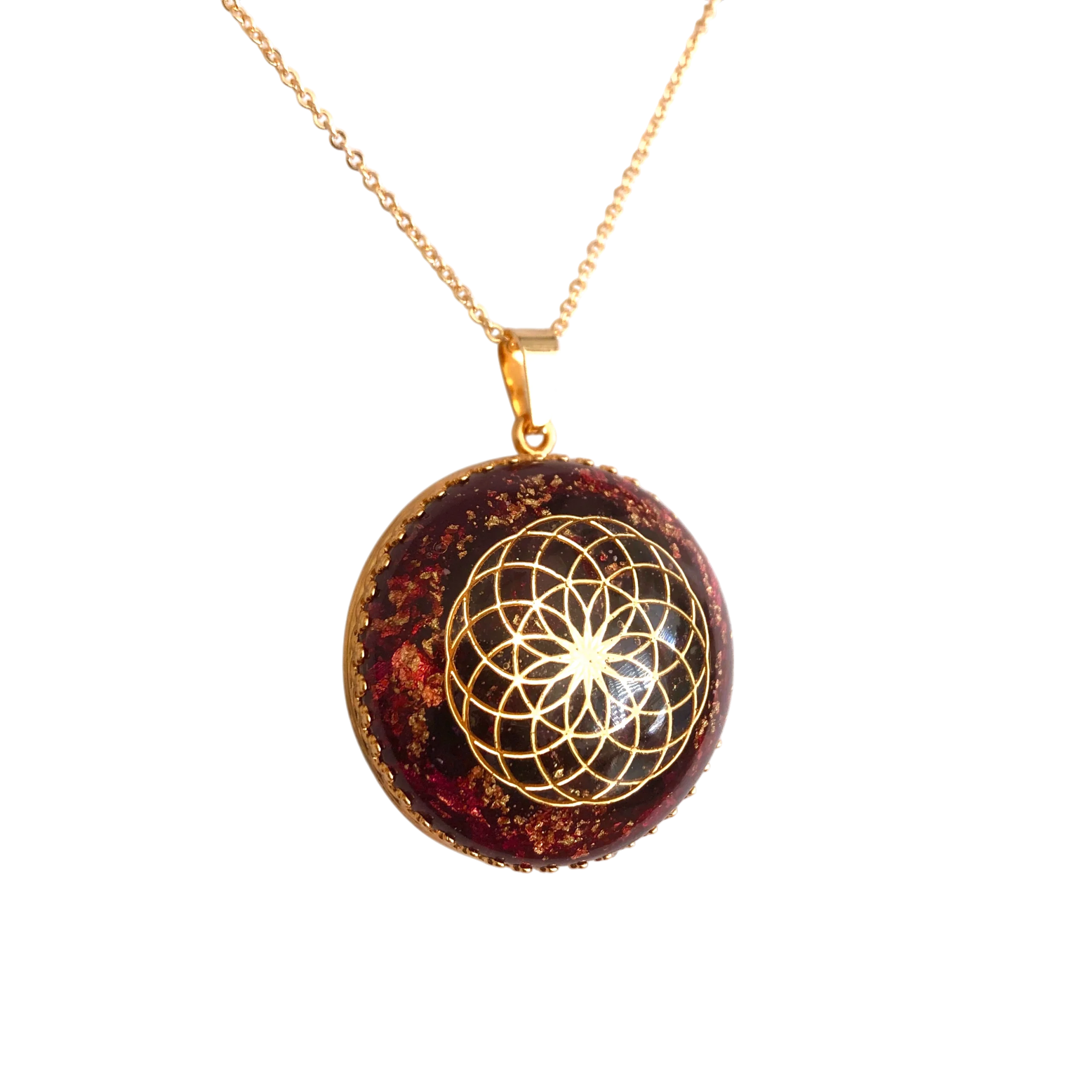 Lotus of Life Robijn orgonite hanger – Passie & Kracht